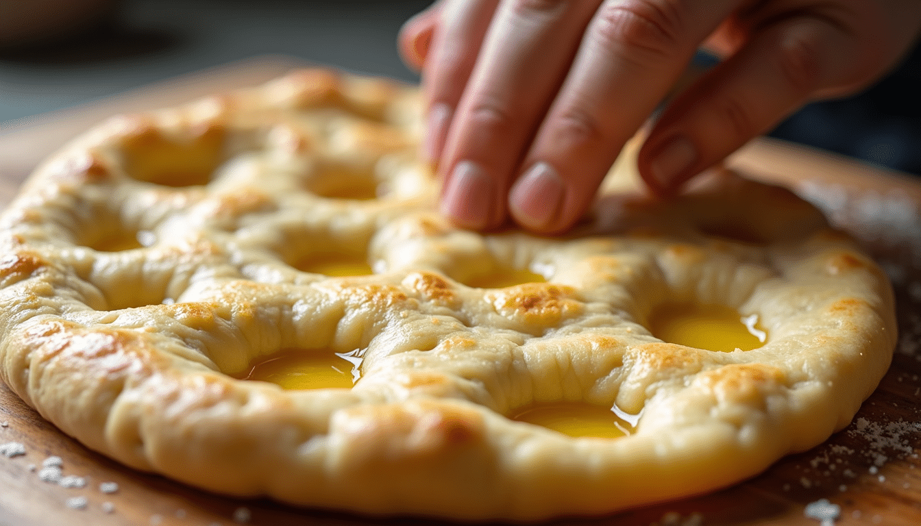 Olive oil prevents sticking, enhances flavor, and helps create focaccia’s signature golden, crisp exterior while keeping the inside tender.