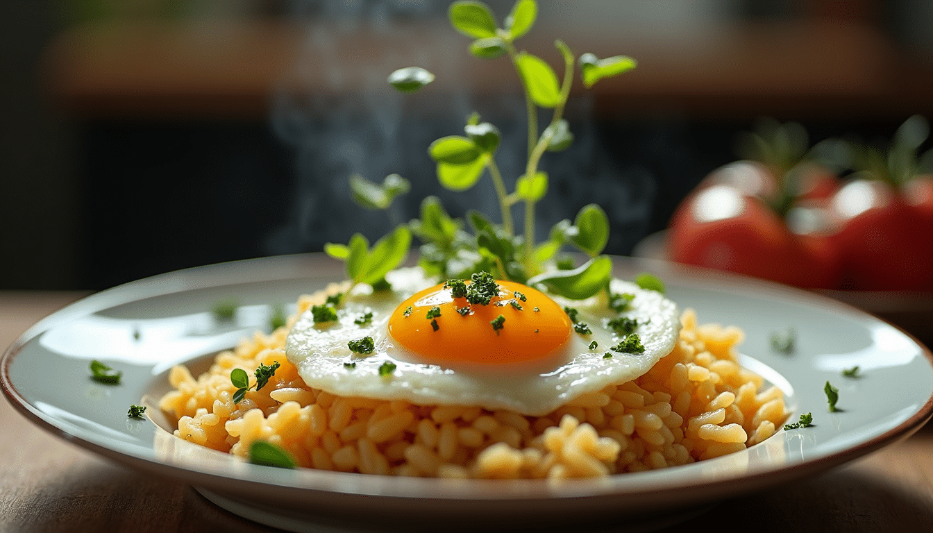 This pegao-style crispy rice is built for leftovers: crisp chicken skin, render spicy chorizo with onion and garlic, then press arroz con gandules into a hot pan until the bottom turns deeply golden. Flip it onto a platter, top with buttery garlic-pepper eggs, and finish with cilantro for a punchy, crunchy, savory plate.